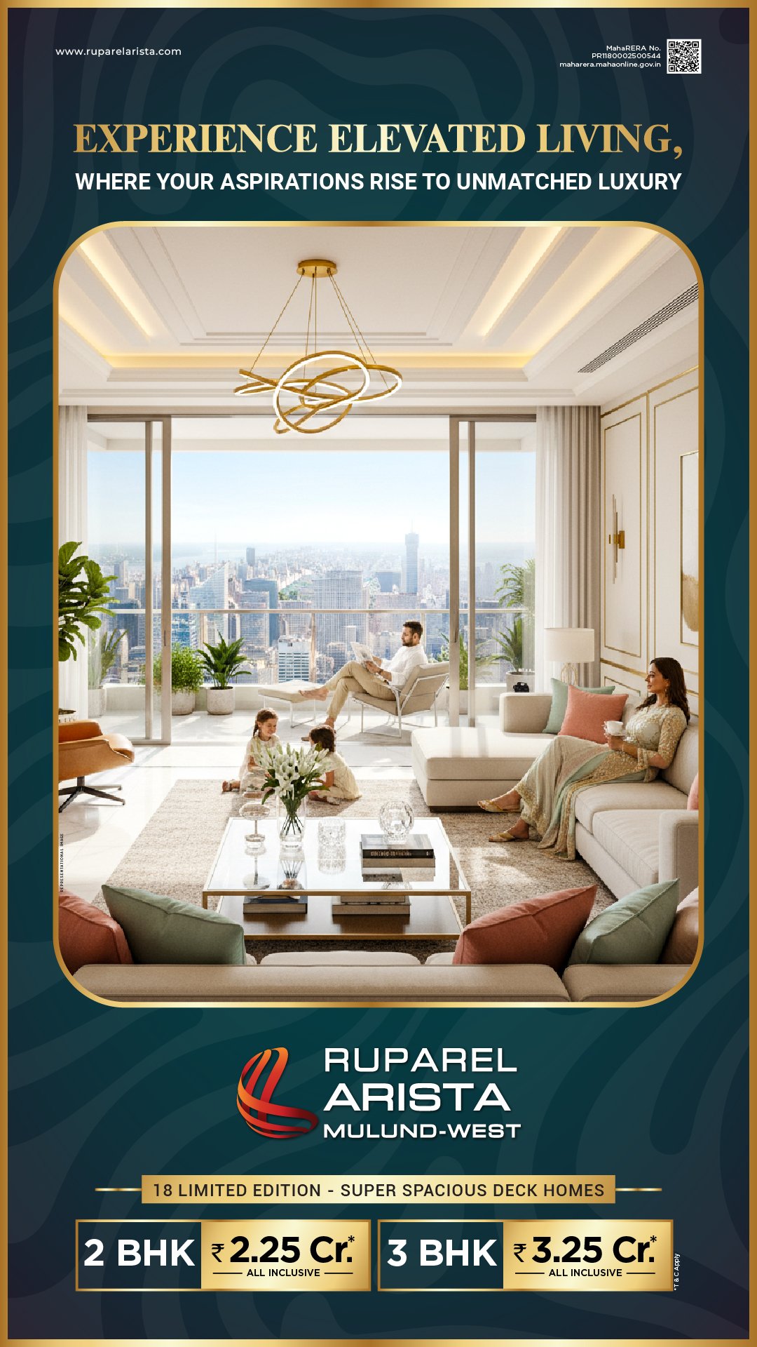 Ruparel Arista, Ruparel Realty’s third iconic landmark, upholds the brand’s legacy of uncompromised quality, offering ultimate spaces and exceptional returns.