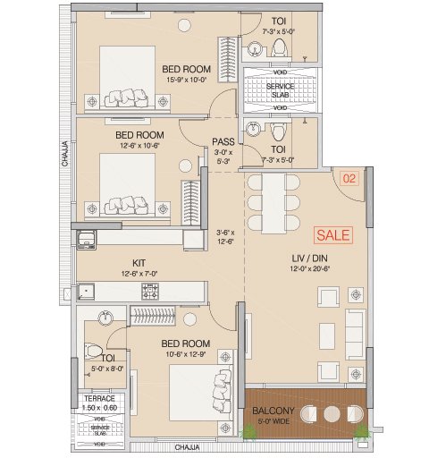 2 BHK – A UNIT PLAN - 785 SQ. FT.